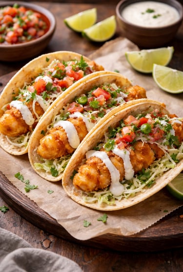 Baja-style fish tacos feature crispy battered white fish, typically cod or mahi-mahi, tucked into a warm corn tortilla for a perfect balance of crunch and softness